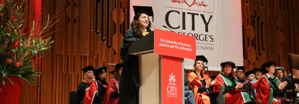 Many congratulations to Laura Avetsiyan who recently graduated from the MA in Global Financial Journalism programme at City St George’s, University of London, supported by a scholarship from the Marjorie Deane Financial Journalism Foundation. She was awarded the honour of giving a speech at the graduation ceremony for the course.